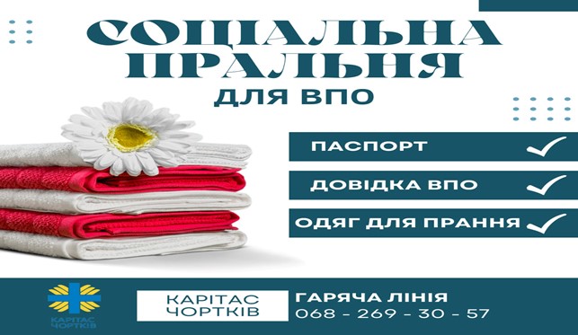 7 Серпня 2022, 12:19У місті Чортків, що на Тернопільщині, внутрішньо переміщені особи можуть безкоштовно випрати та висушити одяг у соціальній пральні. Про це пише РеІнформ з посиланням на фейсбук Благодійного фонду «Карітас».