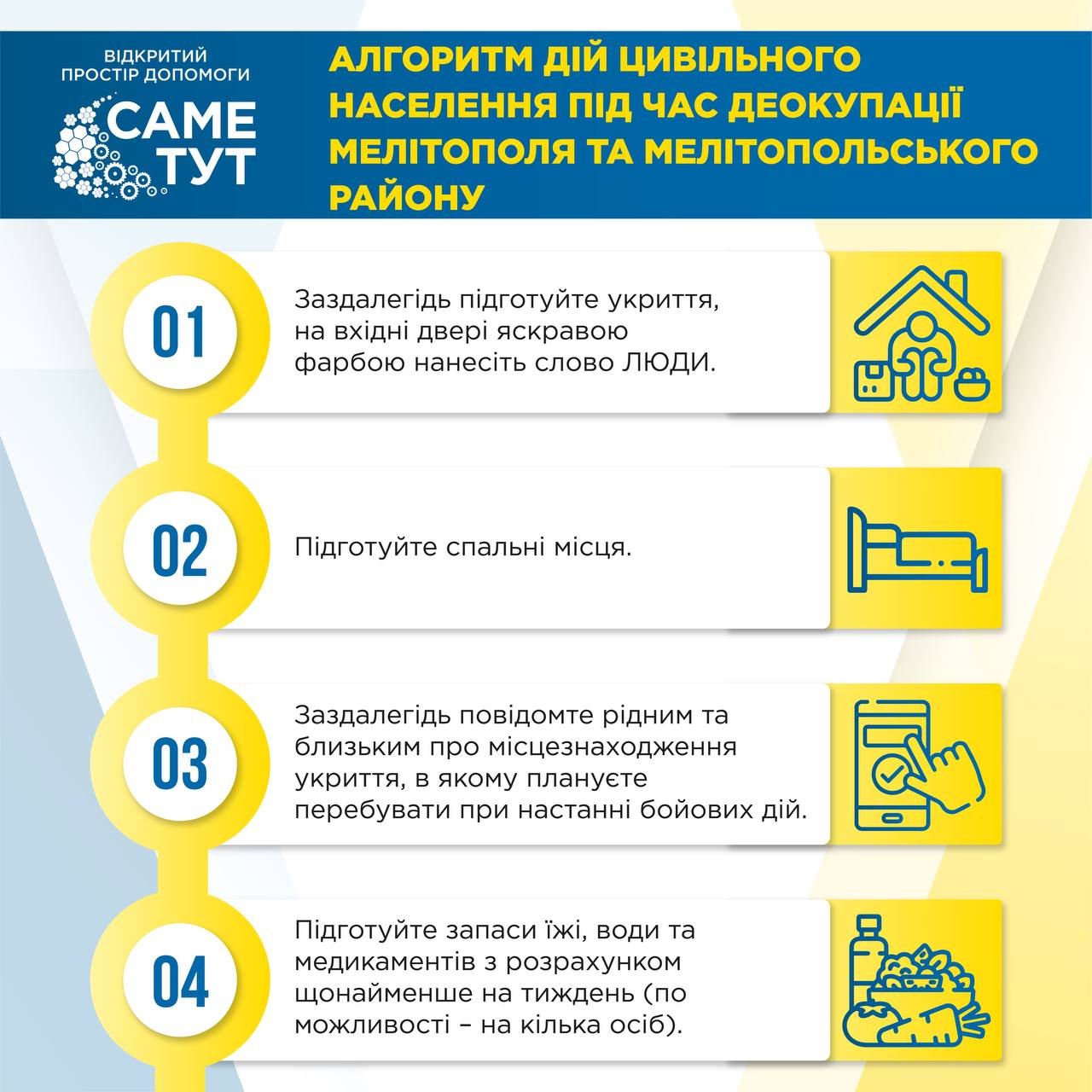 За його словами, українська влада вже розробила інструкцію на період звільнення тимчасово окупованих територій. Вона складається з 13 дій, які допоможуть місцевим жителям залишатися у безпеці під час деокупації. Переглянути їх можна в інфографіці, яка наведена нижче: