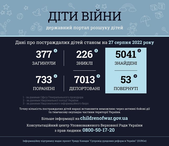 https://childrenofwar.gov.ua/ – платформа, на яку можна повідомити та знайти всю інформацію про дітей, які постраждали внаслідок війни рф проти України.