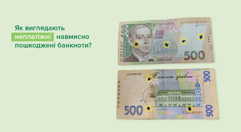 У банку закликають, якщо під час розрахунків вам пропонують пошкоджену банкноту, краще відмовитися та попросити іншу, адже підроблені та навмисно пошкоджені банкноти вилучаються без відшкодування їх вартості.