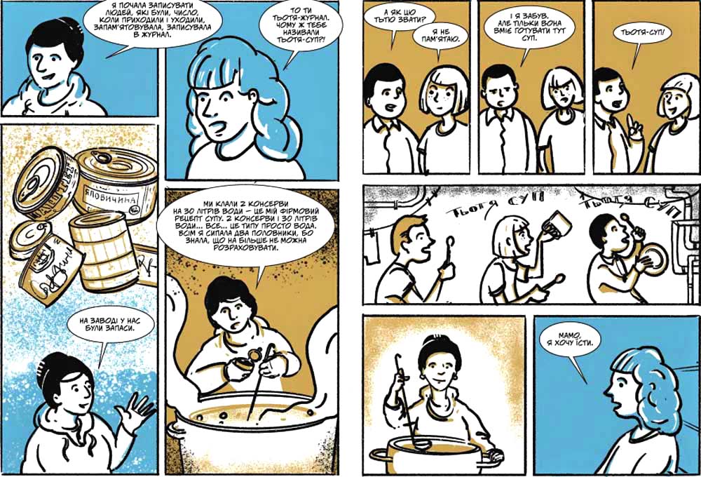 Ще один репортаж «Тітка Суп» базується на спогадах Наталі Бабеуш – працівниці комбінату, яка годувала дітей на «Азовсталі».