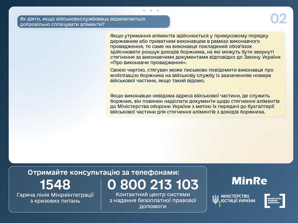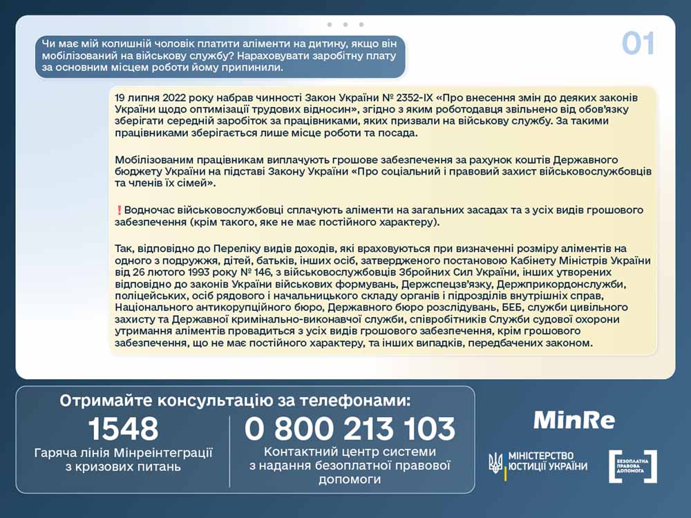 Роз’яснення щодо виплати аліментів, якщо батько дитини мобілізований, а нараховувати заробітну плату за основним місцем роботи йому припинили. Також радимо ознайомитися з порядком дій, якщо військовослужбовець відмовляється добровільно сплачувати аліменти.