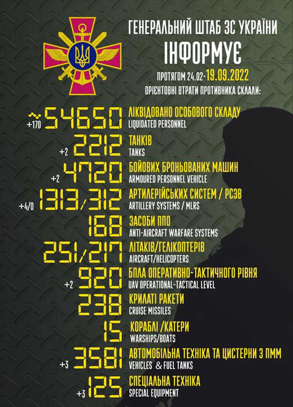 особового складу ‒ близько 54650 (+170) осіб ліквідовано,