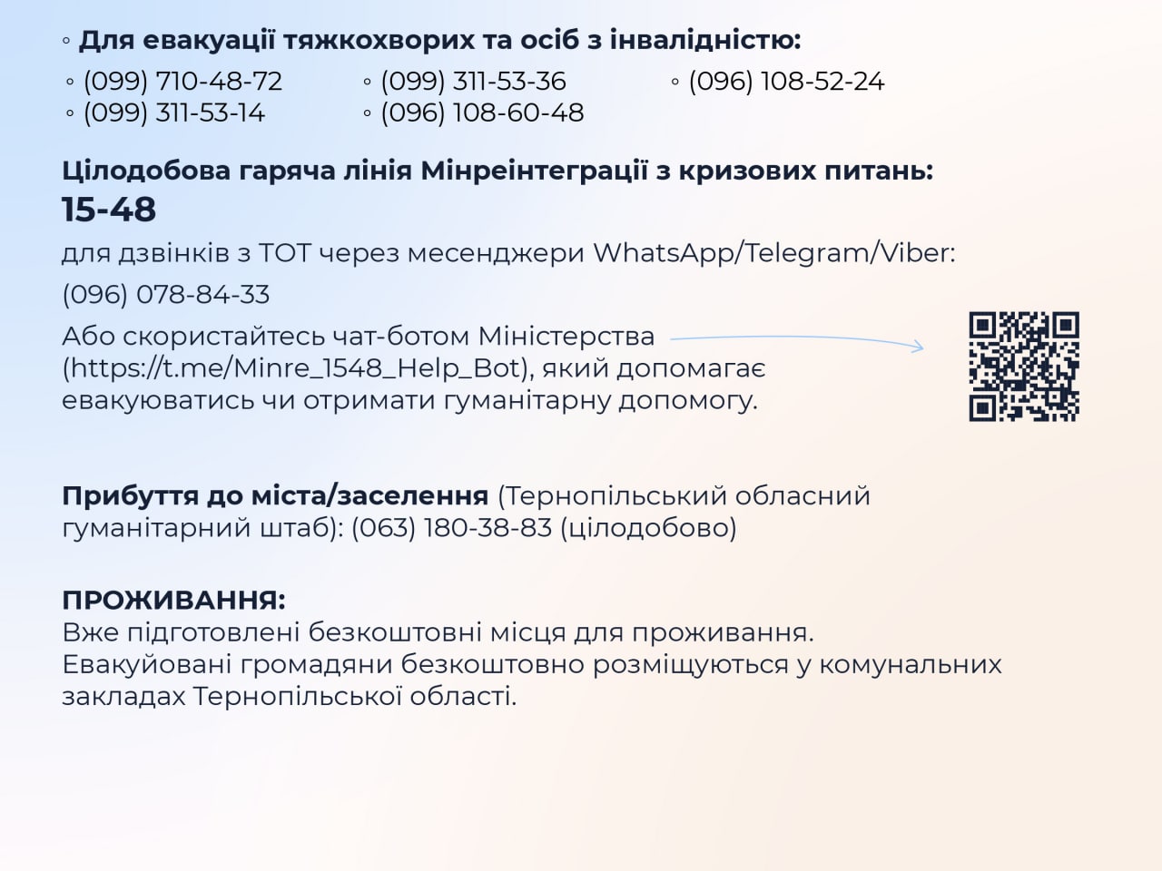 Починаючи з 2 листопада, людей будуть евакуювати до Тернопільської області замість Кіровоградської. Відповідне рішення ухвалив Коордштаб.