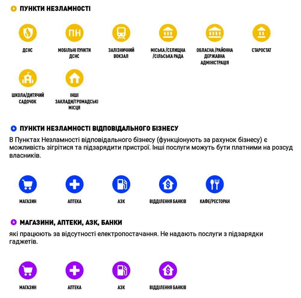 «Пункти незламності» на онлайн-мапі розділили на категорії