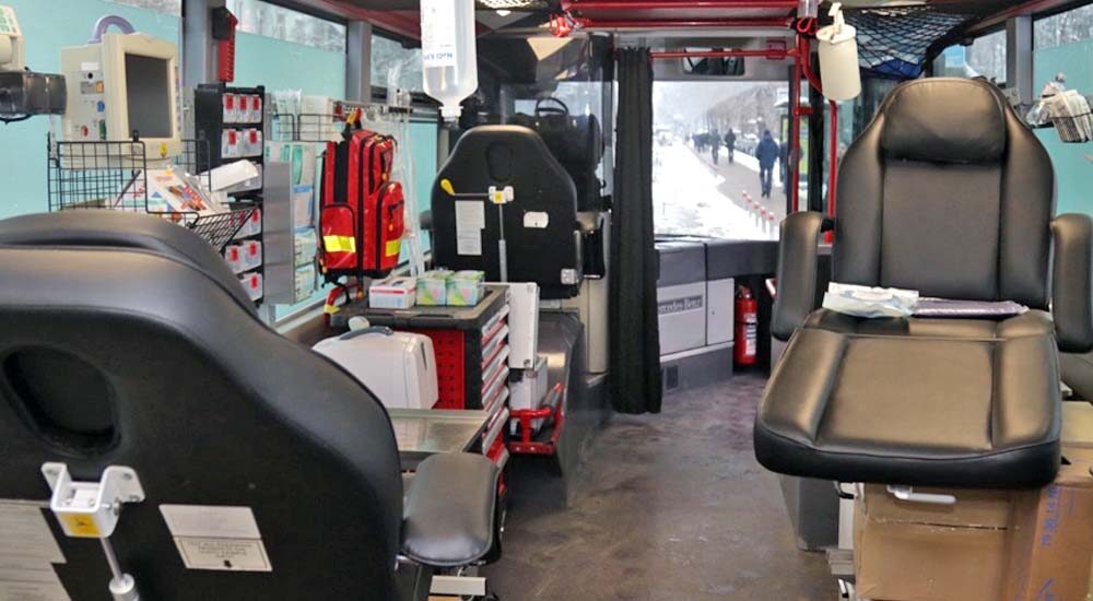 У госпіталі можуть одночасно надати допомогу десятьом пораненим військовим. У салоні автобуса є два операційних крісла, п’ять реанімаційних місць, сім моніторів життєдіяльності, сім перфурзорів, коагулятор для зупинки кровотечі, відсмоктувач рідини, апарати УЗД і ШВЛ, стоматологічне крісло з обладнанням і потужний Wi-Fi для телемедицини.
