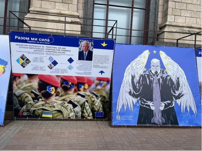 На виставкових стендах розповідається про допомогу Європейського Союзу Україні та шлях України до ЄС. Одна із тем стендів присвячена розвінчуванню міфів про відносини ЄС та України.