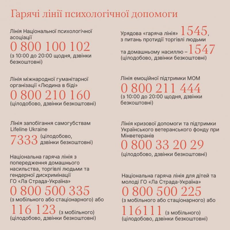 За підтримки програми Першої леді діють гарячі лінії, спеціалісти яких допоможуть у найважчі моменти. Ознайомитися з ними можна в інфографіці.
