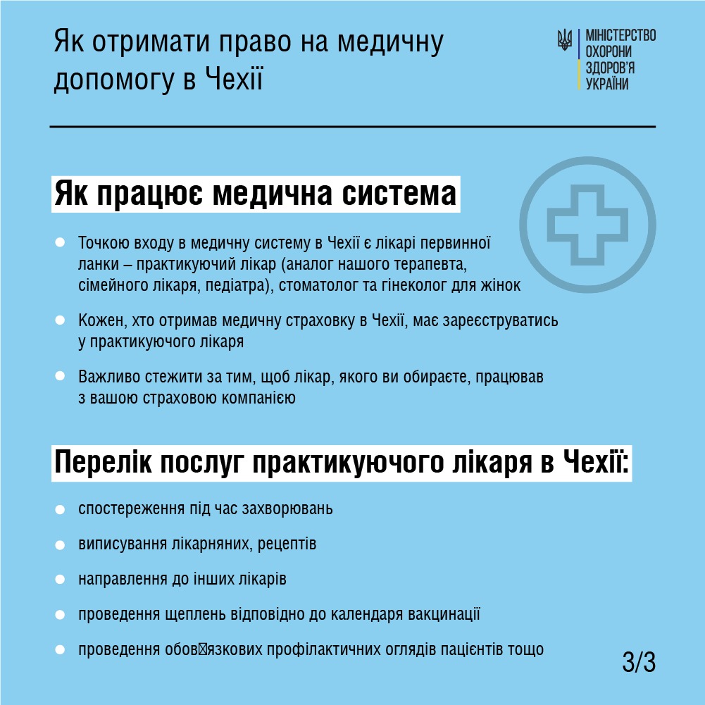 В інфографіці можна докладно ознайомитися з інформацією, як отримати медичну допомогу в Чехії.