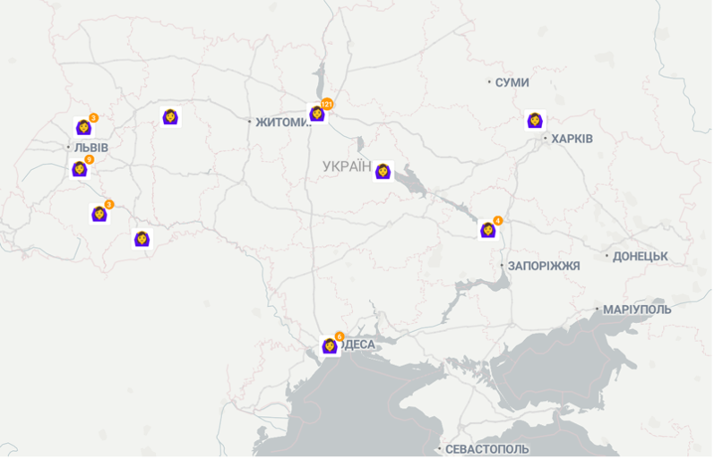 Наразі на мапі відображені ті заклади, інформацію про які мала команда сервісу.