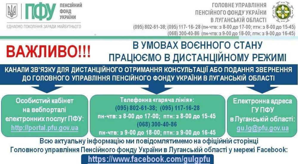 Також звернення можна надсилати і на електронну пошту ГУ ПФУ в Луганській області: gu.lg@pfu.gov.ua.