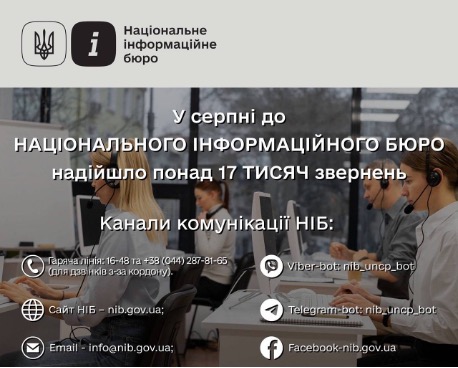 У серпні до Національного інформаційного бюро надійшло понад 17 тисяч звернень