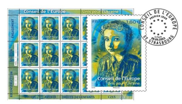 «11 вересня 2023 року Пошта Франції випустить нову марку для кореспонденції, надісланої з Ради Європи, яка проілюстрована створеною в Україні роботою французького художника C215», – повідомили в Раді Європи.