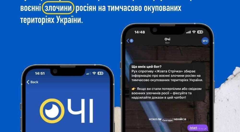 Для збору інформації про воєнні злочини на тимчасово окупованих територіях «Жовта стрічка» створила чат-бот «Очі». Про це РеІнформ повідомляє з посиланням на телеграм руху опору.