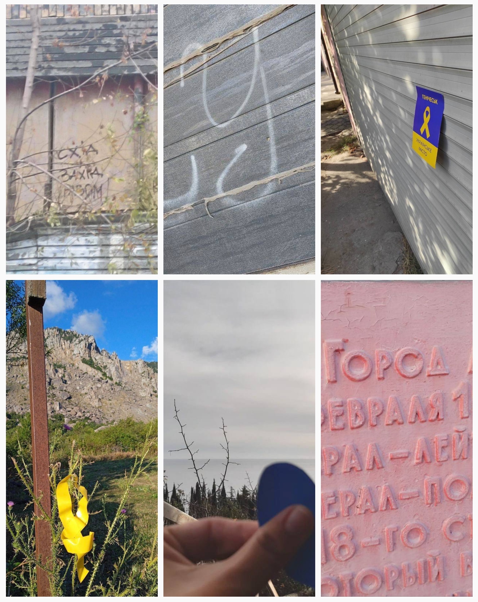 Активісти продовжують поширювати вулицями тимчасово окупованих міст українську символіку. Партизани розвішують жовті стрічки та саморобні листівки. Зокрема впродовж тижня підпілля провело рейди вулицями Луганська, Генічеська, Ялти, Сімферополя, Севастополя та Алушти.