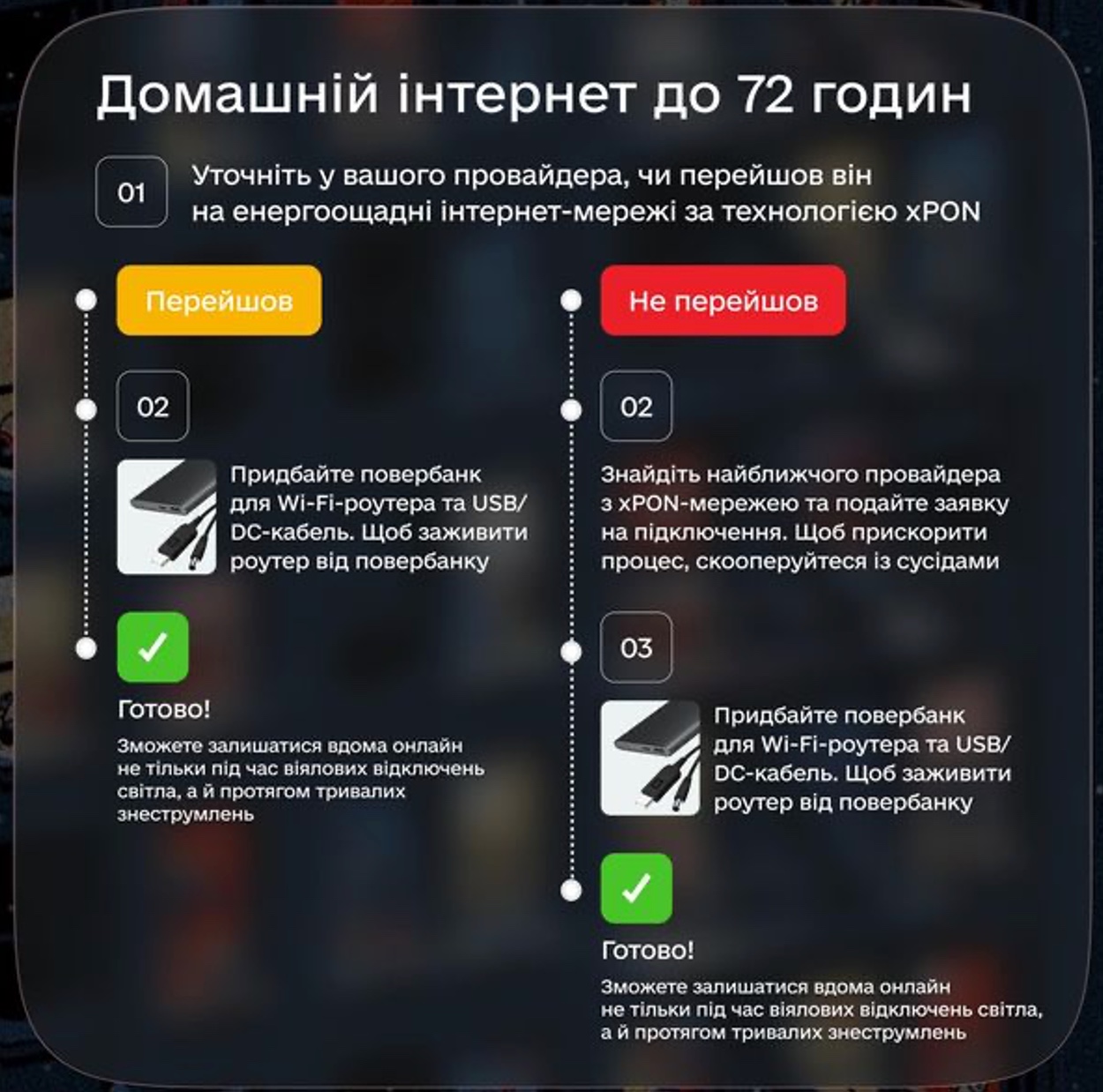 Уточніть у вашого провайдера, чи перейшов він на енергоощадні інтернет-мережі за технологією хPON: