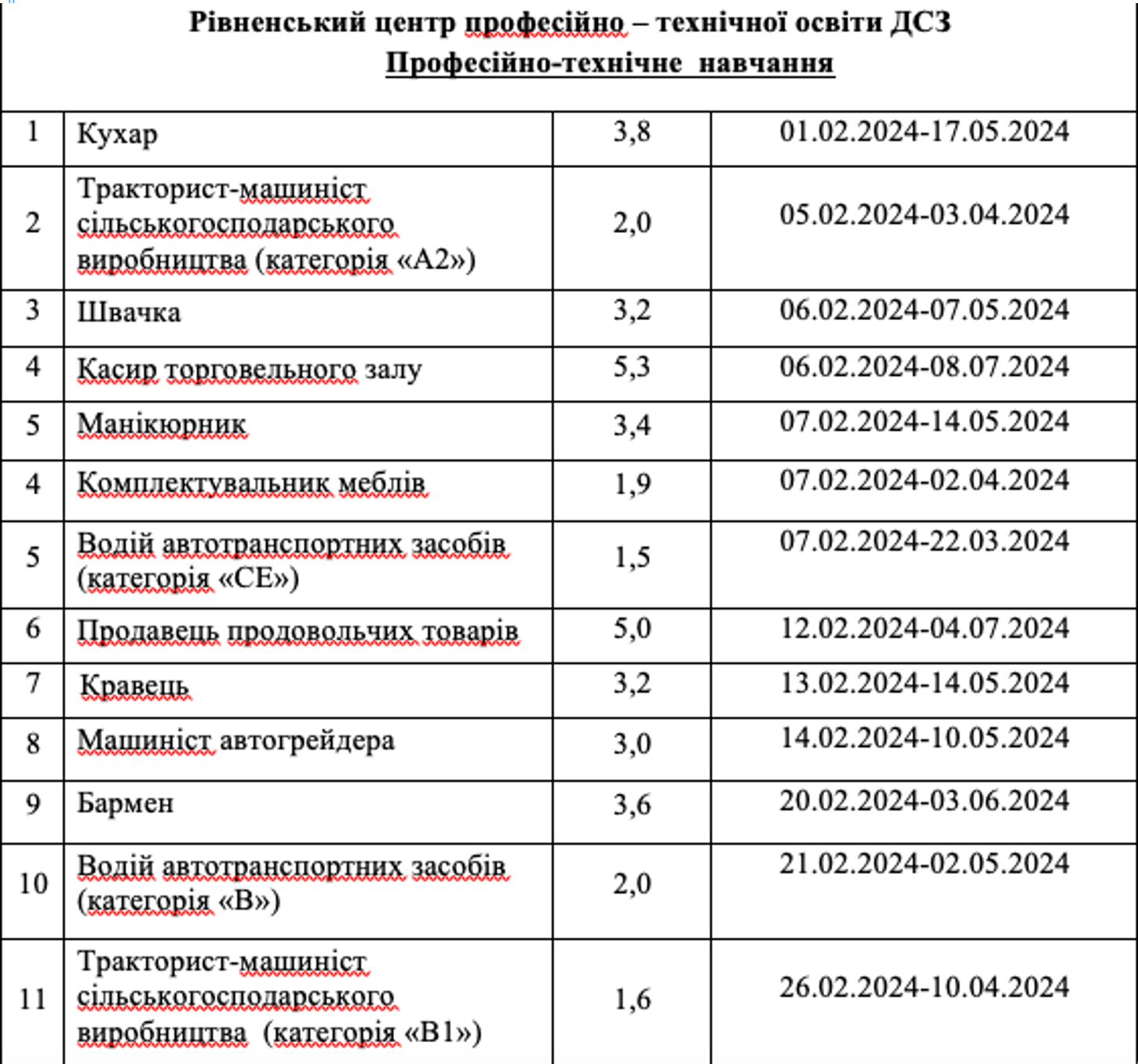 - Рівненський центр професійно-технічної освіти ДСЗ