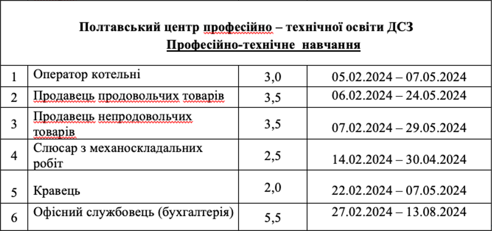 - Полтавський центр професійно-технічної освіти ДСЗ