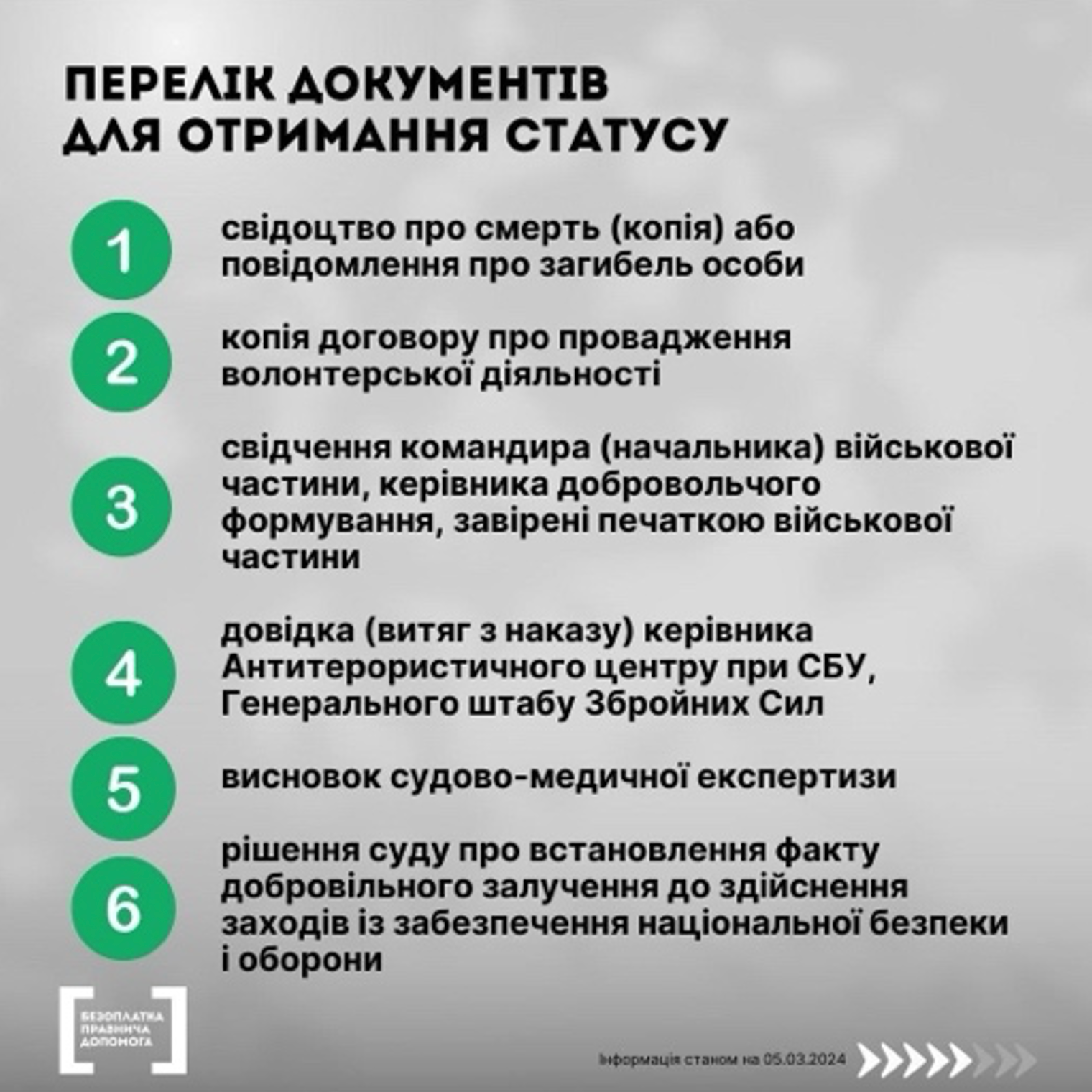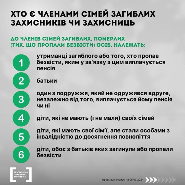 Щоб отримати передбачені законом пільги членам сім’ї загиблого (померлого) Захисника чи Захисниці України, необхідно мати відповідний статус. Про це повідомляється на Facebook-сторінці Мін’юсту. Про це РеІнформ повідомляє з посиланням на Мінреінтеграції.