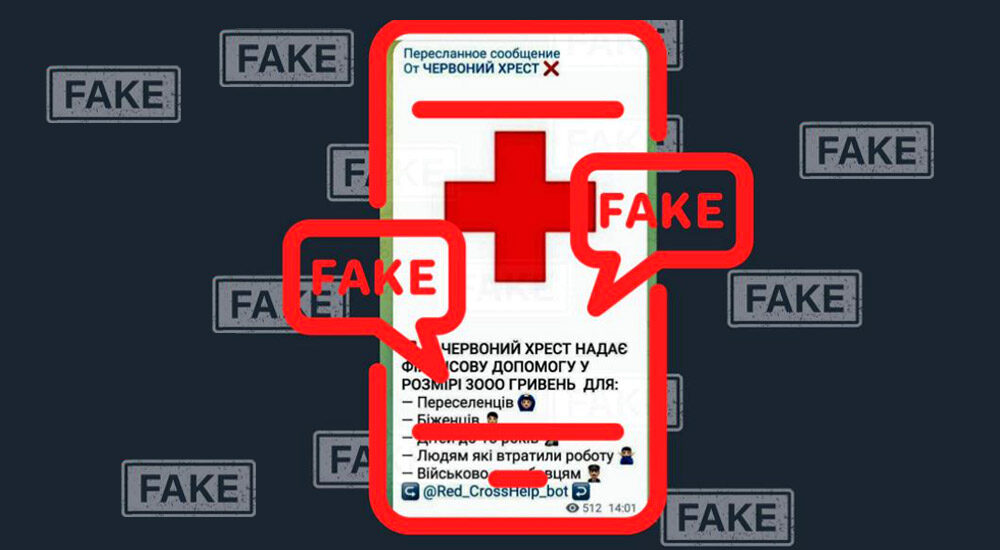 У повідомленнях, нібито розісланих від імені Червоного Хреста України, обіцяють грошові виплати у розмірі 3 тис. грн біженцям, переселенцям, військовим, дітям до 18 років та особам, які втратили роботу. Для «отримання допомоги» пропонується відправити персональні та банківські дані на телеграм-бот для «реєстрації» отримувача.