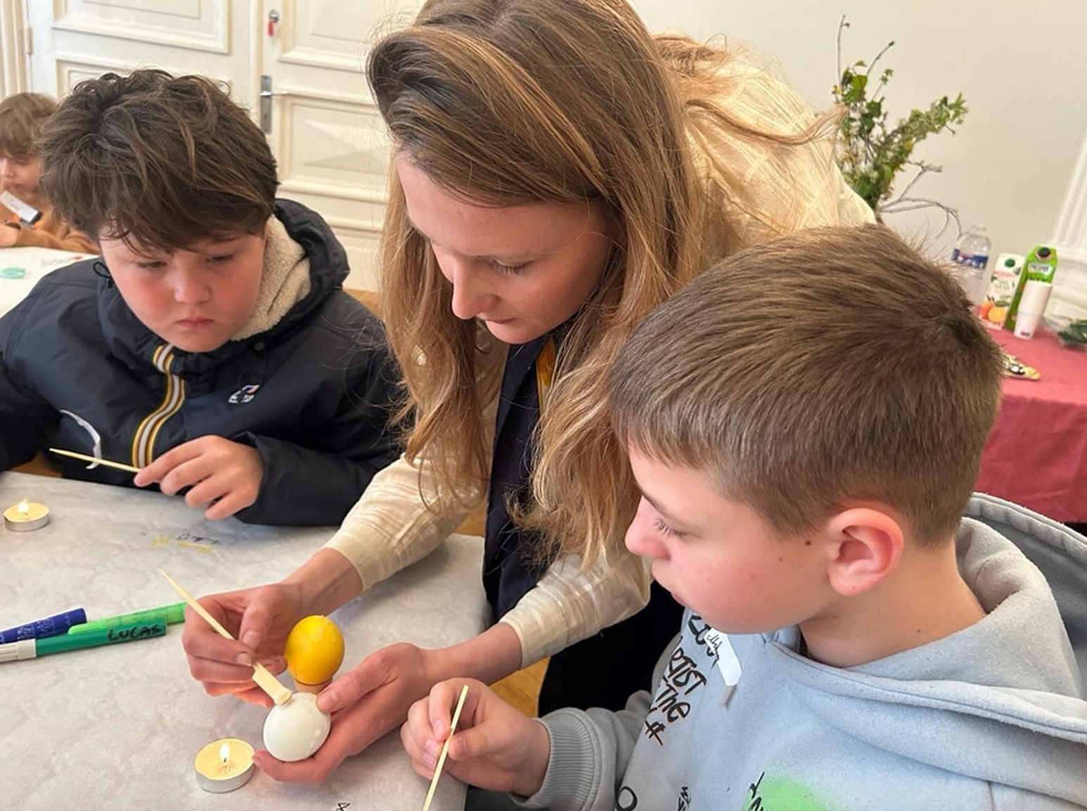 Напередодні великодніх свят за західним обрядом діти, які відвідують курси української мови в Парижі, взяли участь у майстерні «Писанка». Про це повідомляє РеІнформ із посиланням на фейсбук Centre Culturel d’Ukraine en France.