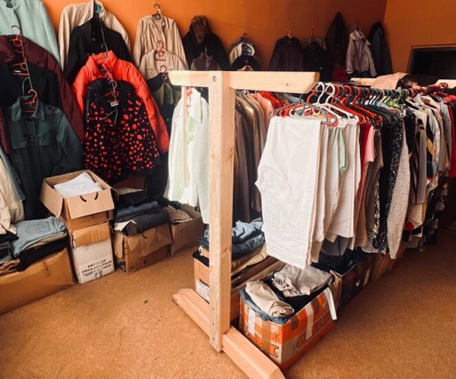 Зазначається, що тут можна обрати одяг на будь-який вік, розмір та сезон.  Наприклад, штани, куртки, спідниці, сорочки, взуття, плаття, плащі, пальта, піджаки, майки, светри, тощо. Його волонтерам передали міжнародні організації.