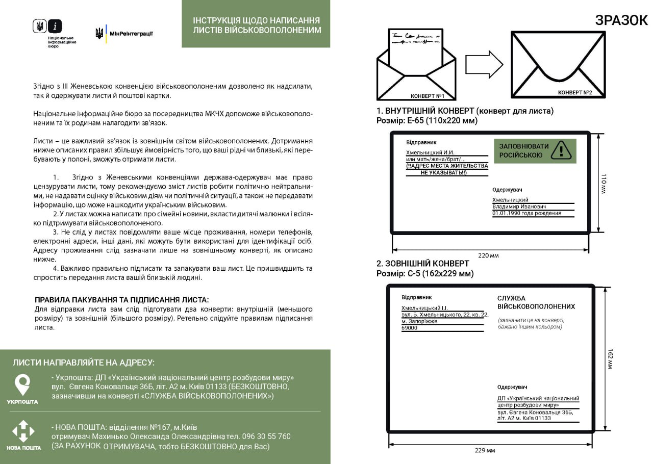 Слід зазначити, що листування військовополонених із близькими відбувається за підтримки оператора поштового зв’язку «Нова пошта», який безоплатно надає відповідні послуги у межах програми «Гуманітарна пошта України».