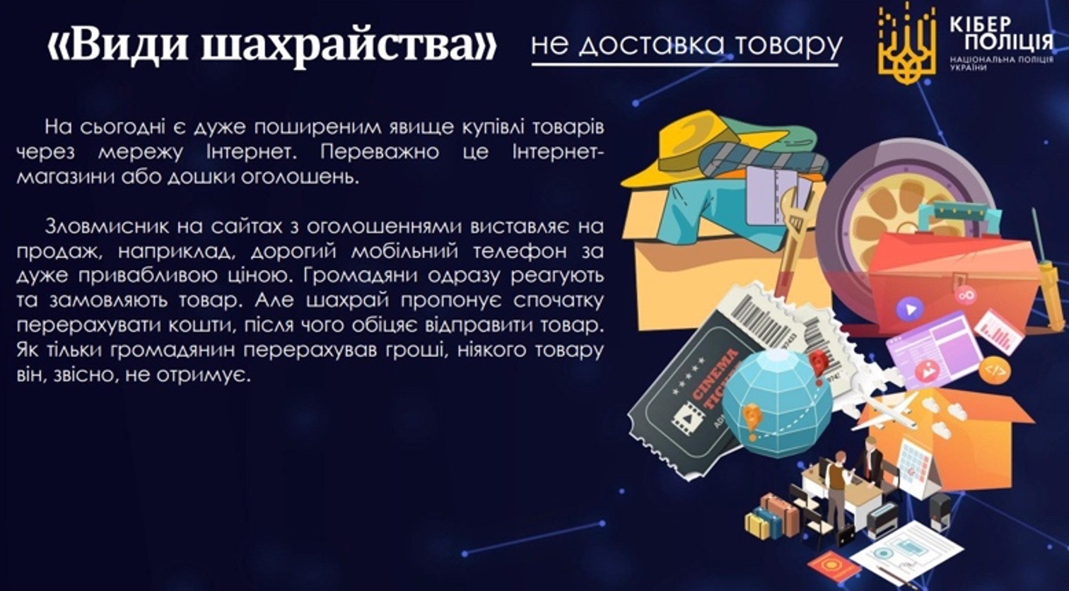 - завжди будьте пильними при здійсненні покупок через Інтернет-ресурси (магазини, аукціони, дошки оголошень, соціальні мережі та ін.);