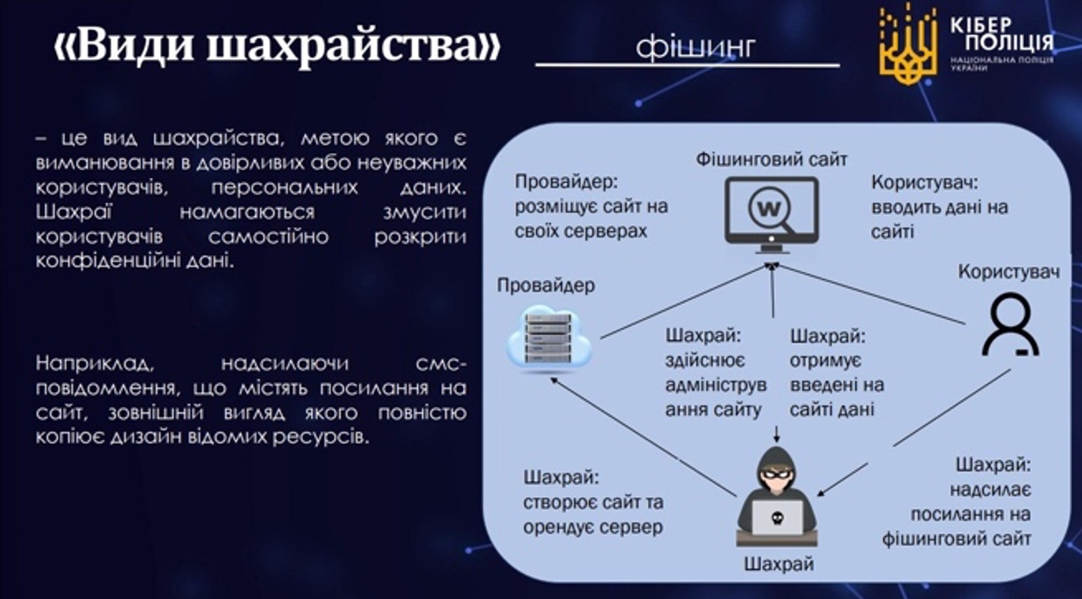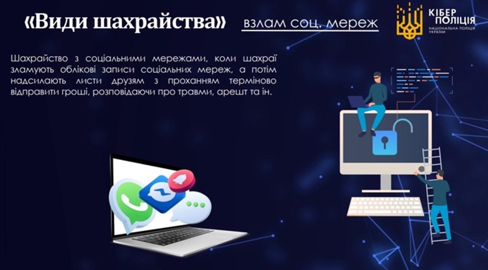 Зазначається, що левова доля звернень – скарги на продаж неіснуючих товарів, злочини з використанням соціальної інженерії або фішингу. У більшій частині випадків ці схеми доволі банальні: псевдопродавці в інтернеті пропонують різні товари і послуги та просять передплату, а після отримання грошей – зникають.