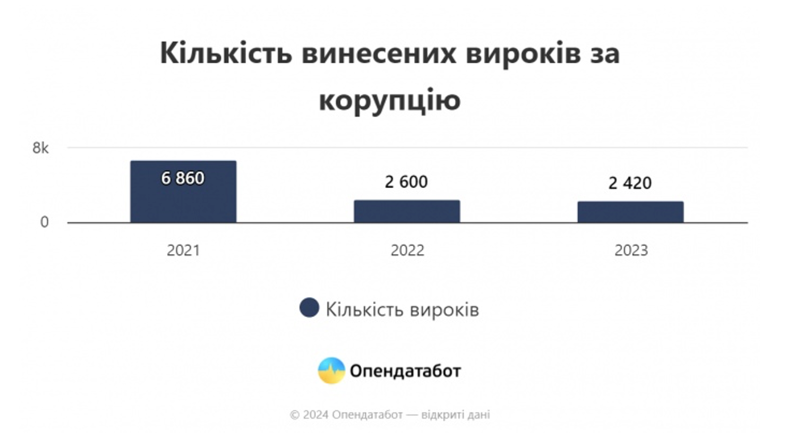 Торік до Реєстру корупціонерів потрапили 2,4 тисячі осіб, що майже втричі менше, ніж у довоєнному 2021 році. Про це РеІнформ повідомляє з посиланням на дані платформи Опендатабот.
