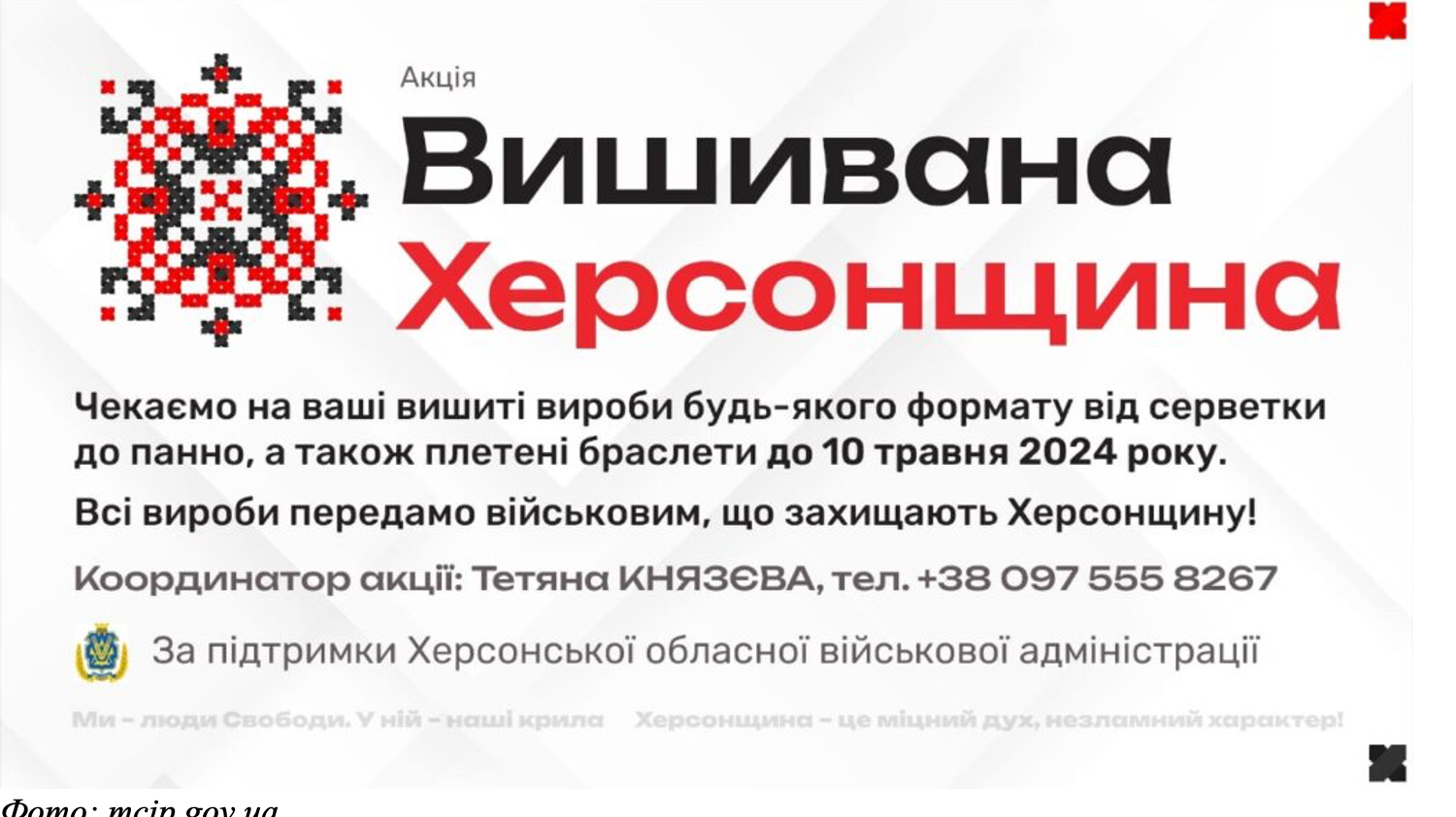 Крім того, до Дня вишиванки в регіоні стартував проєкт «Вишивана Херсонщина». Він передбачає збір патріотичних виробів рукоділля та подальшу передачу їх нашим військовослужбовцям.
