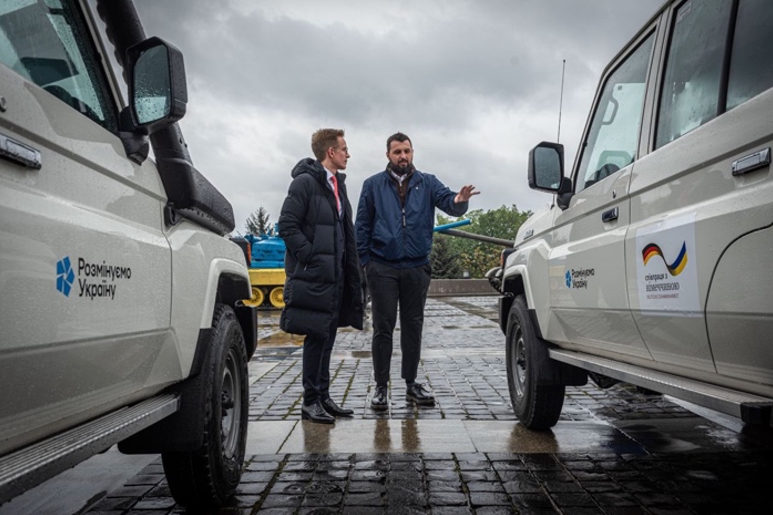«10 позашляховиків, які поїдуть сьогодні в Центр розмінування ДССТ в Дніпрі – це результат співпраці із нашими партнерами з Німеччини. Такі довготривалі партнерства ми розбудовуємо поступово, без поспіху і завдяки якісній комунікації з нашими партнерами вони знають про потреби наших урядових структур, що займаються гуманітарним розмінуванням, а ми можемо оперативно закривати потреби ДССТ, ДСНС, Нацполіції та Нацгвардії», – сказав заступник Міністра економіки України Ігор Безкаравайний.