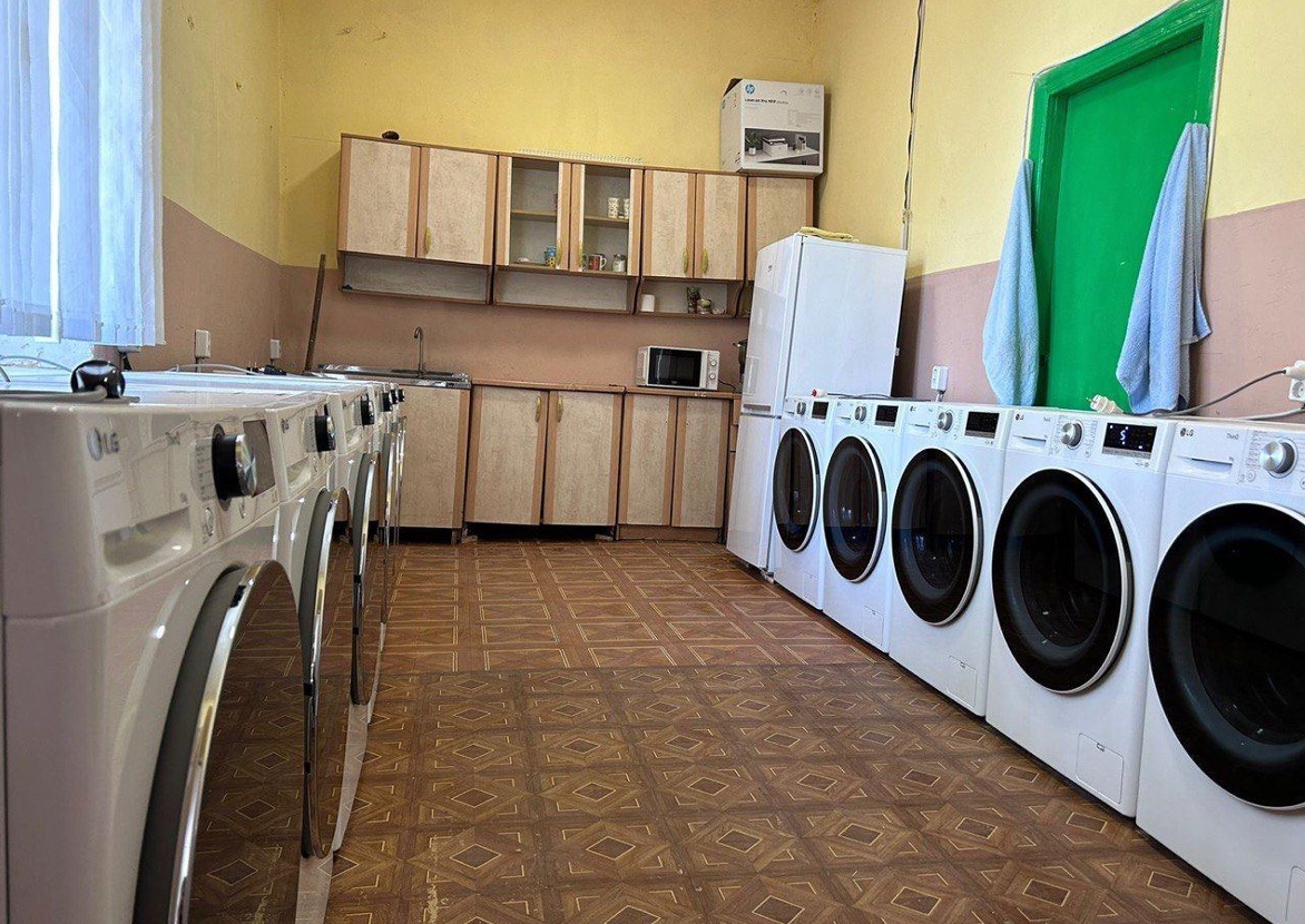 Зазначається, що це спеціальне приміщення, оснащене шістьма пральними та сушильними машинами, де можна безкоштовно прати свої речі.