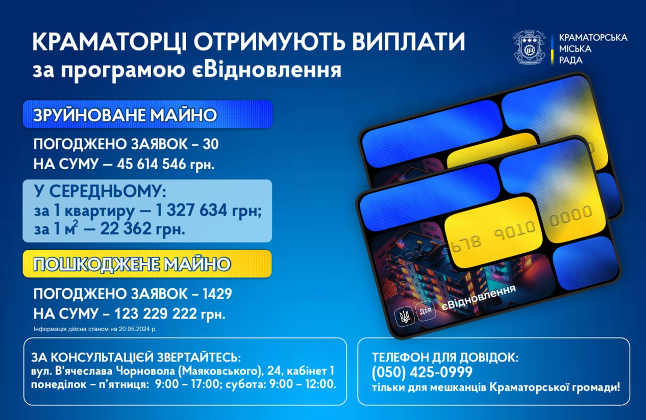 Майже 170 мільйонів гривень отримають мешканці Краматорська за програмою «єВідновлення»