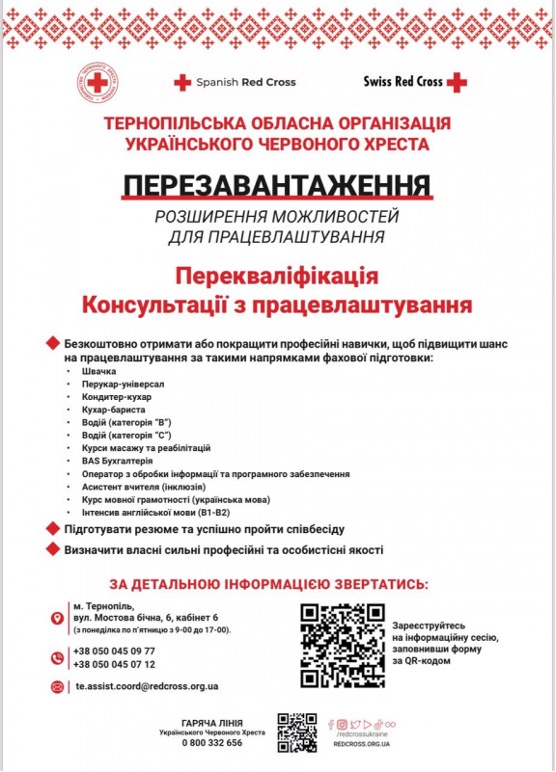 Допомога надається в межах проєкту «Перезавантаження: розширення можливостей для працевлаштування», за підтримки Іспанського Червоного Хреста та Швейцарського Червоного Хреста.