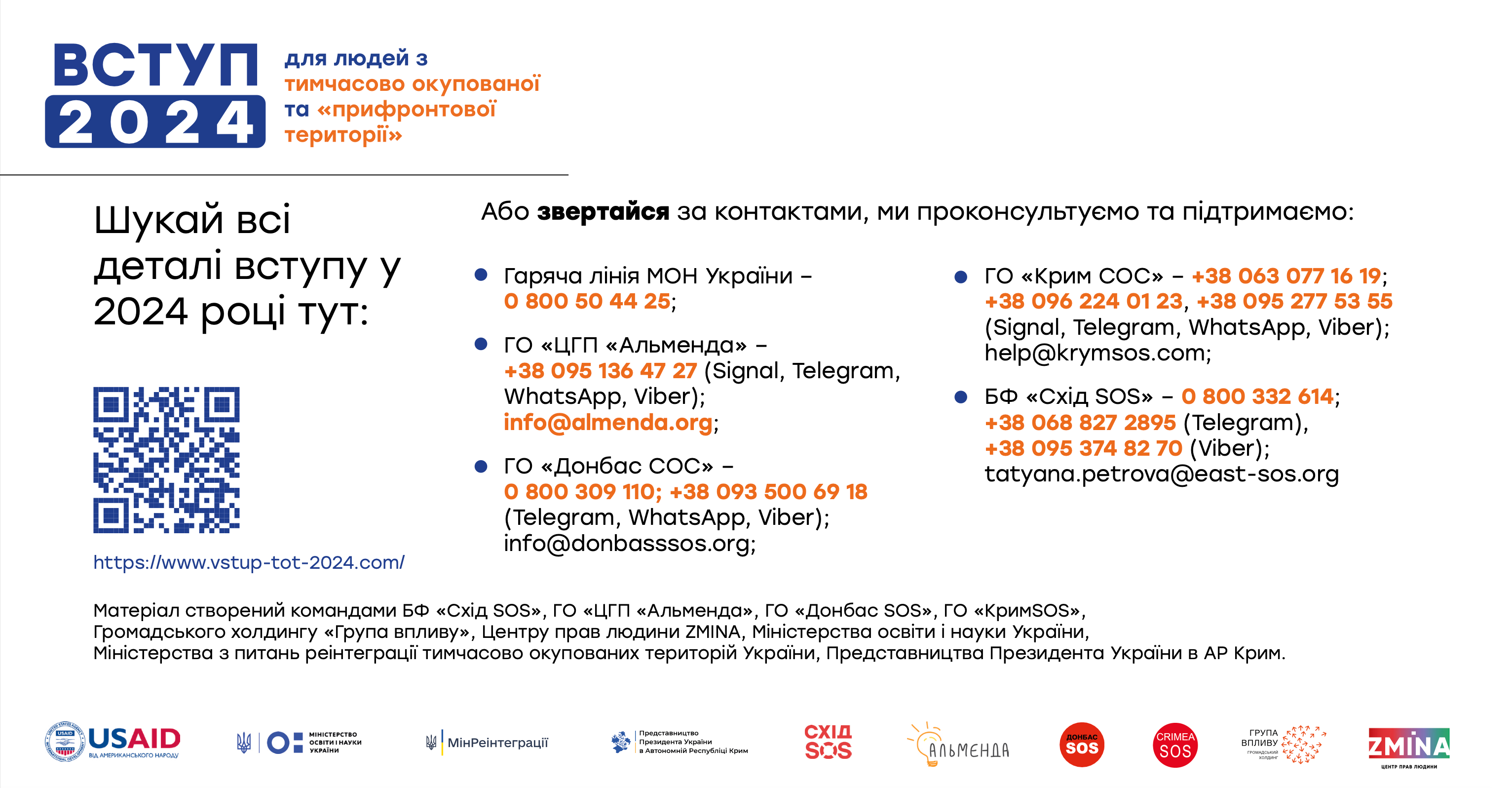 «Вступ 2024»: усе, що потрібно знати абітурієнтам із тимчасово окупованих та «прифронтових» територій