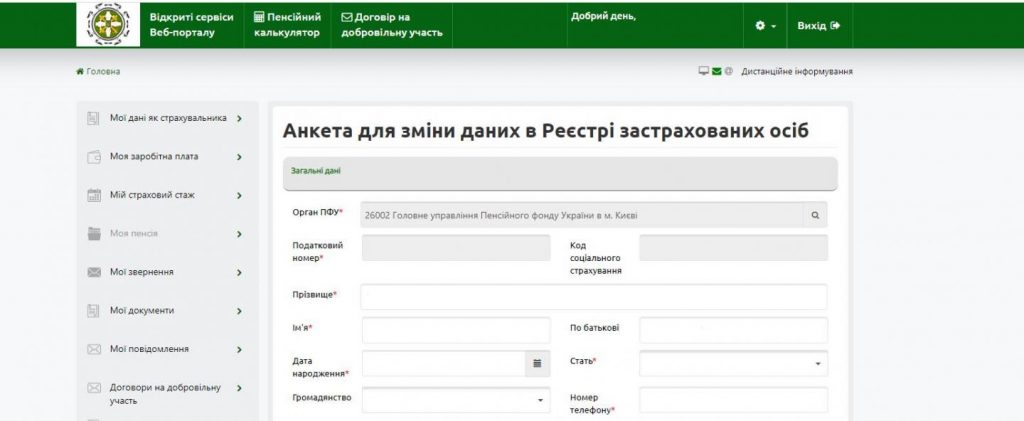 Інструкція: як змінити дані в реєстрі застрахованих осіб на вебпорталі ПФУ