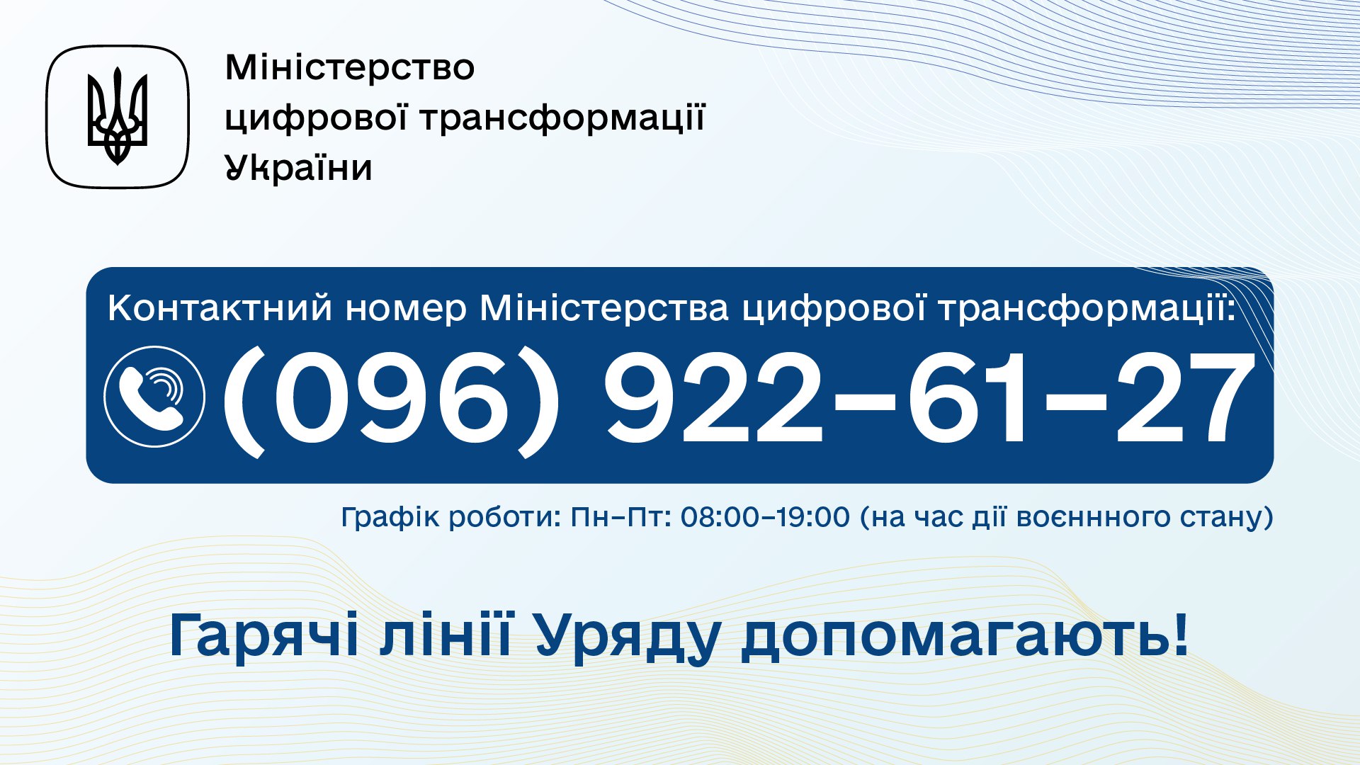 Консультації можна отримати за контактним номером Міністерства цифрової трансформації: +38 (096) 922–61–27.