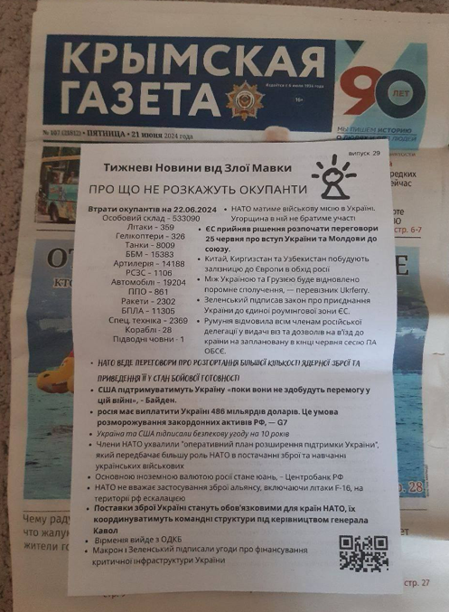 «Новий, 29-й, випуск газети з новинами від Злої Мавки читають у Сімферополі! Ми знаємо, як важливо володіти правдивою інформацією, і як в окупації з цим тяжко. Саме тому ми продовжуємо випускати та поширювати новини, яких росіяни бояться як вогню», — йдеться у повідомленні.