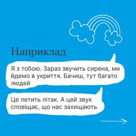 У віці від трьох років дитина повторює те, що оточує її в реальності, вчиться будувати причинно-наслідкові зв’язки і потребує ще більше пояснень. Говорити з малюками краще короткими простими фразами про те, що відбувається. Без подробиць, новин та фотографій. А також пояснювати свій стан та реакції.