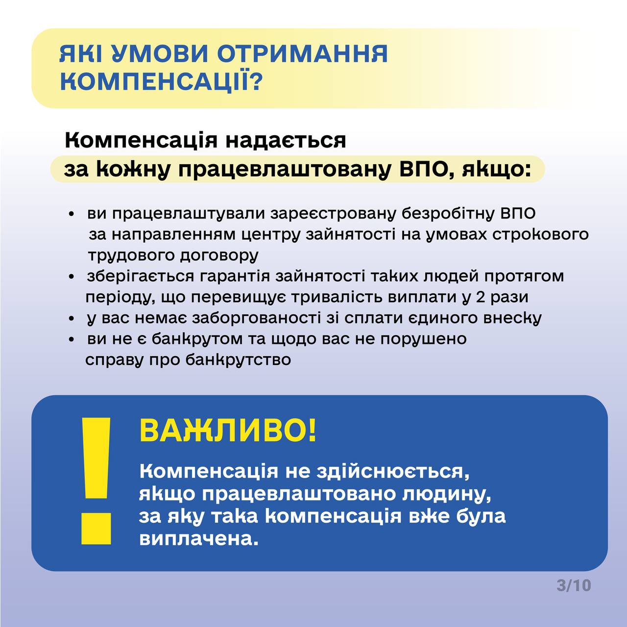 Роботодавці можуть отримати від держави компенсацію витрат на оплату праці працевлаштованих за направленням центрів зайнятості внутрішньо переміщених осіб. Про це РеІнформ повідомляє з посиланням на телеграм Уповноваженого Верховної Ради з прав людини Дмитра Лубінця.