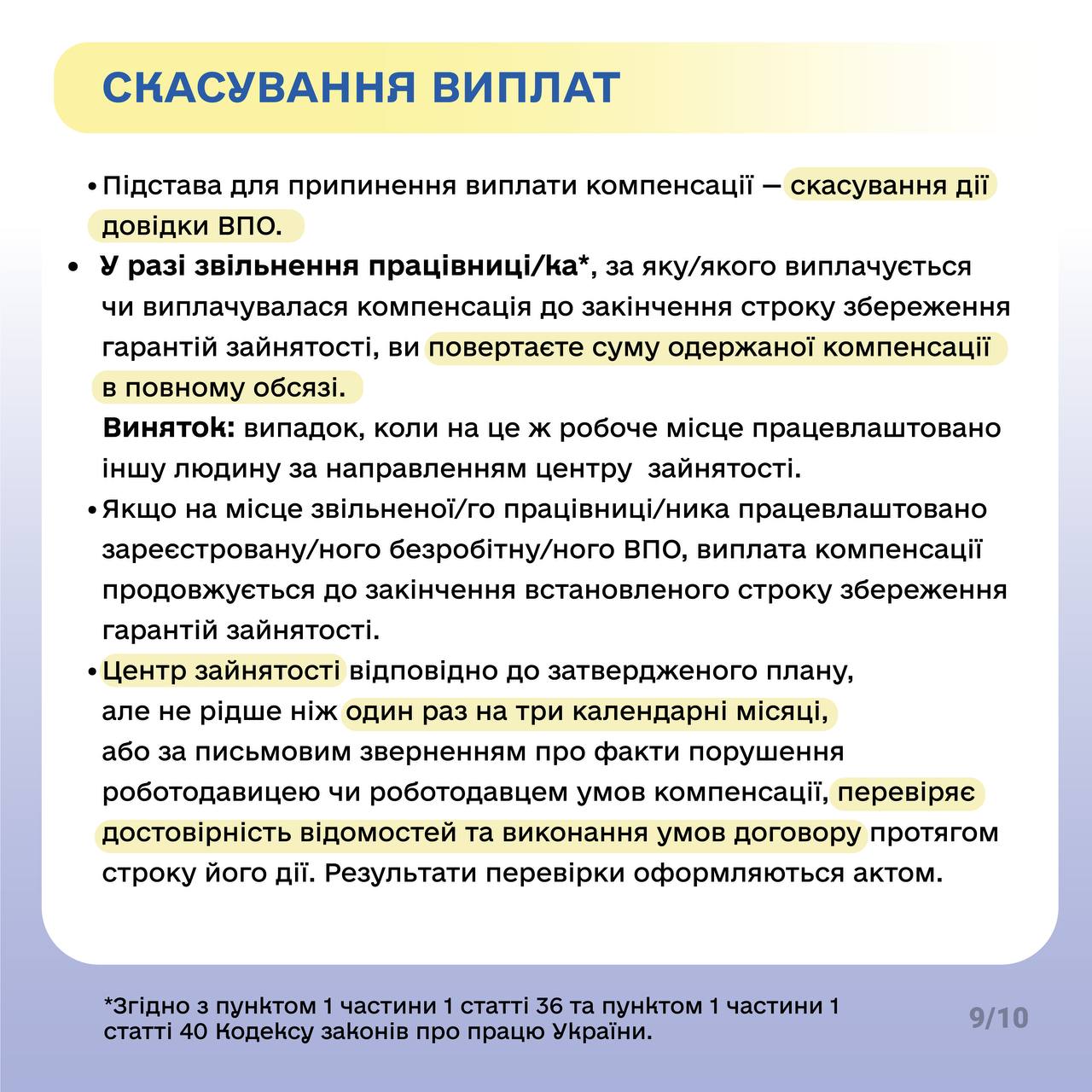 Компенсація виплачується в розмірі фактичних витрат на оплату праці ВПО, але не вище двох мінімальних заробітних плат або обчисленої з неї відповідної суми в разі, коли людина працювала неповний місяць. Наразі розмір мінімальної заробітної плати становить:
