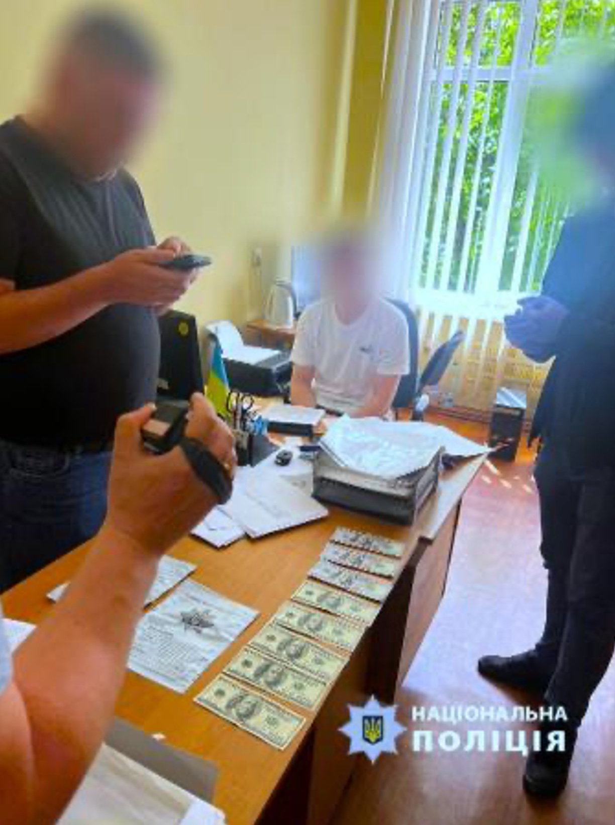 «Всю суму неправомірної вигоди, а це 800 доларів США, фігурант отримав у своєму кабінеті. Та одразу був викритий правоохоронцями. Під час обшуків було виявлено та вилучено кошти, отримані в результаті корупційного правопорушення. Також обшуки поліцейські провели за місцем проживання чоловіка», – йдеться у повідомленні.