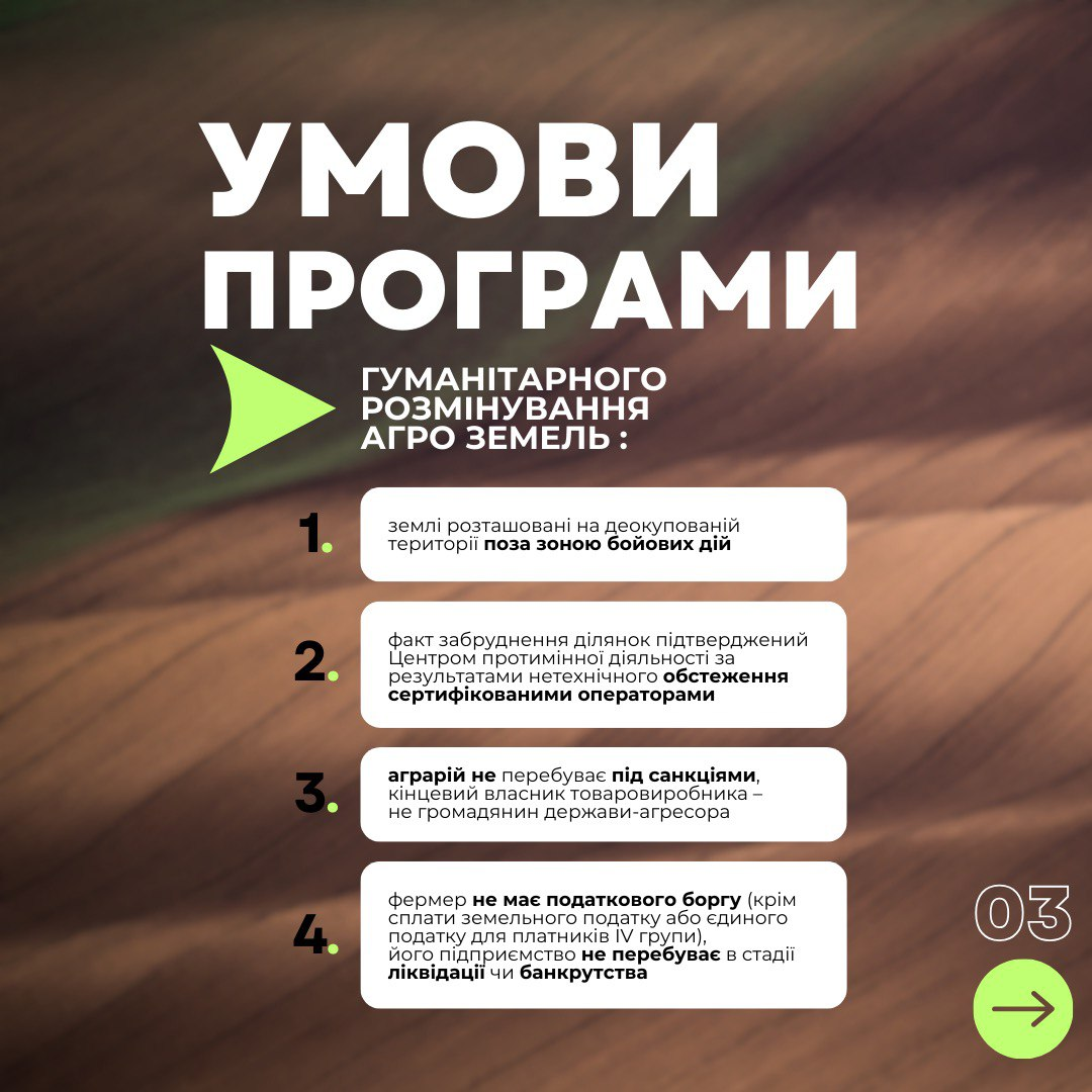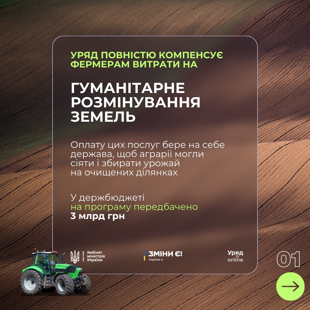 Програму було ініційовано для того, щоб аграрії мали змогу сіяти та збирати врожай на очищених від вибухонебезпечних предметів ділянках. У державному бюджеті на це передбачено 3 мільярди гривень.