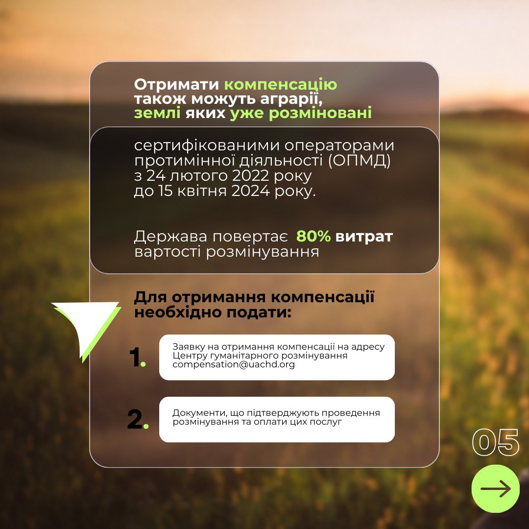Раніше ми повідомляли, що фермери можуть через Держагрореєстр подавати заявки на компенсацію за розмінування.