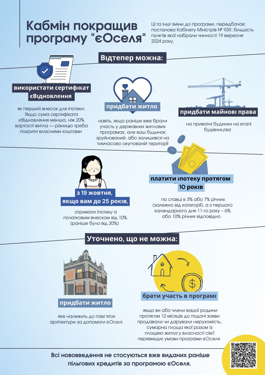 Докладніше з нещодавніми змінами до програми «єОселя» можна ознайомитися в інфографіці.