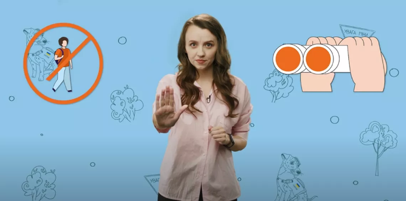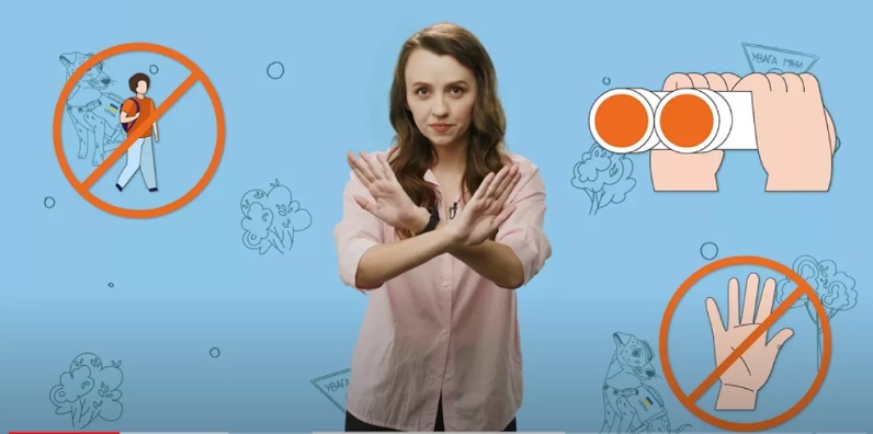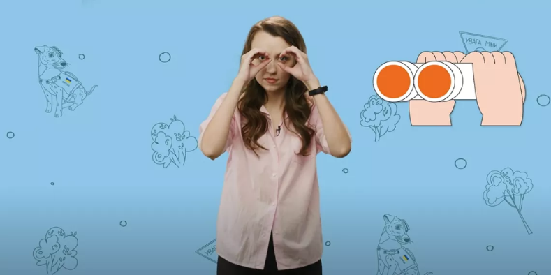 1. Складіть ручки як бінокль та прикладіть до очей – так позначаємо бути уважними.