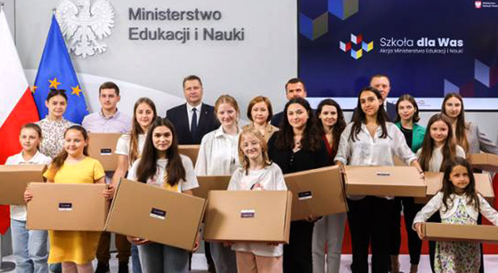 Ініціатива від Міністерства освіти і науки, GovTech, Асоціації цифрової Польщі, Poczta Polska та благодійників. Днями в штаб-квартирі MEiN група українських дітей разом зі своїми вихователями отримали ноутбуки для дистанційного навчання.