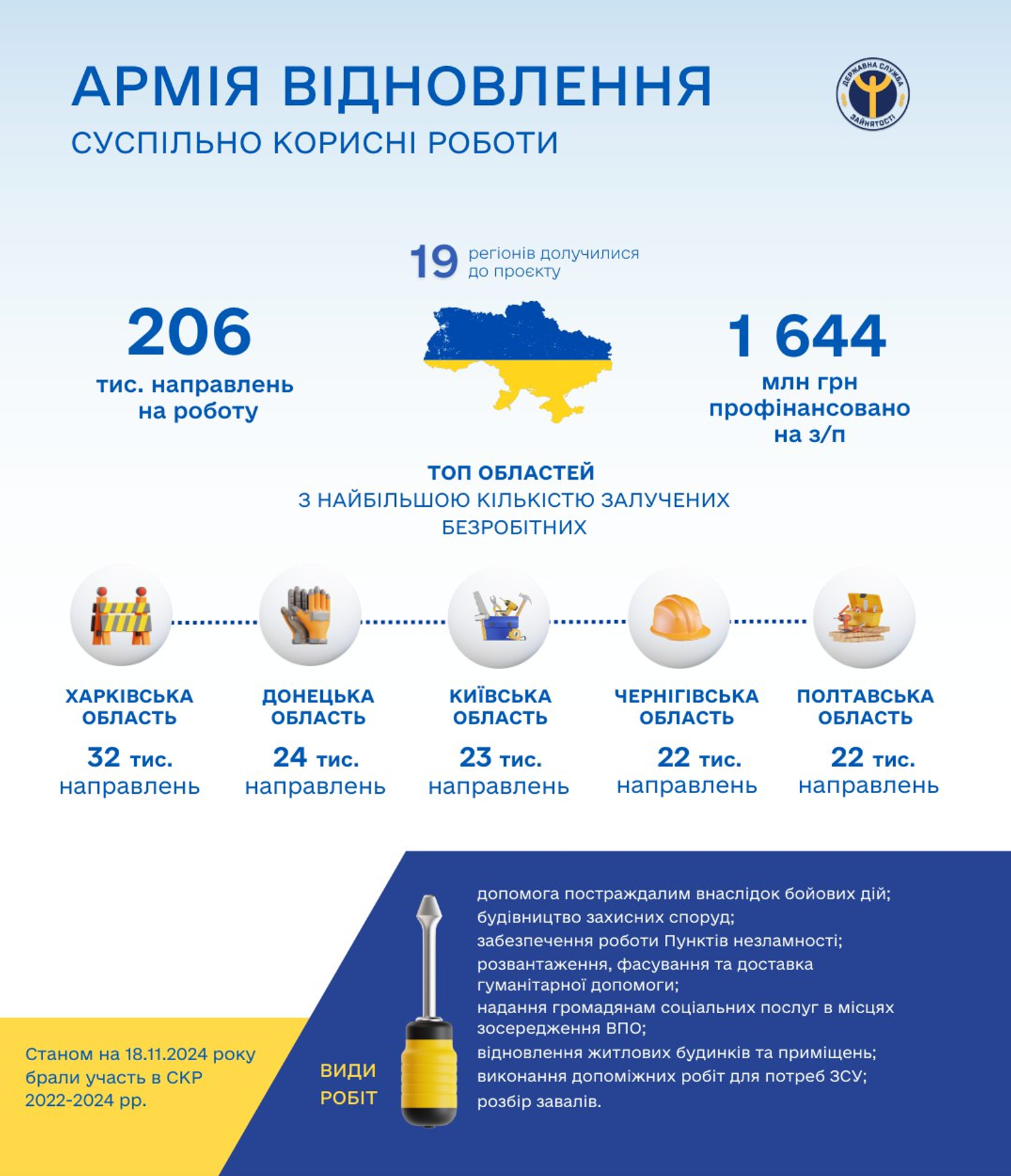 «Армія відновлення»: з початку дії програми вже видано понад 200 тис. направлень на суспільно корисні роботи