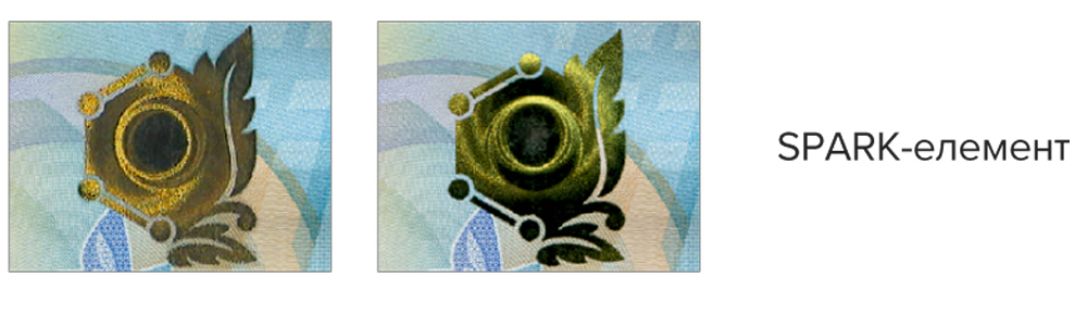 При зміні кута нахилу банкноти спостерігається кінетичний ефект – поступові зміни і колірні переходи.